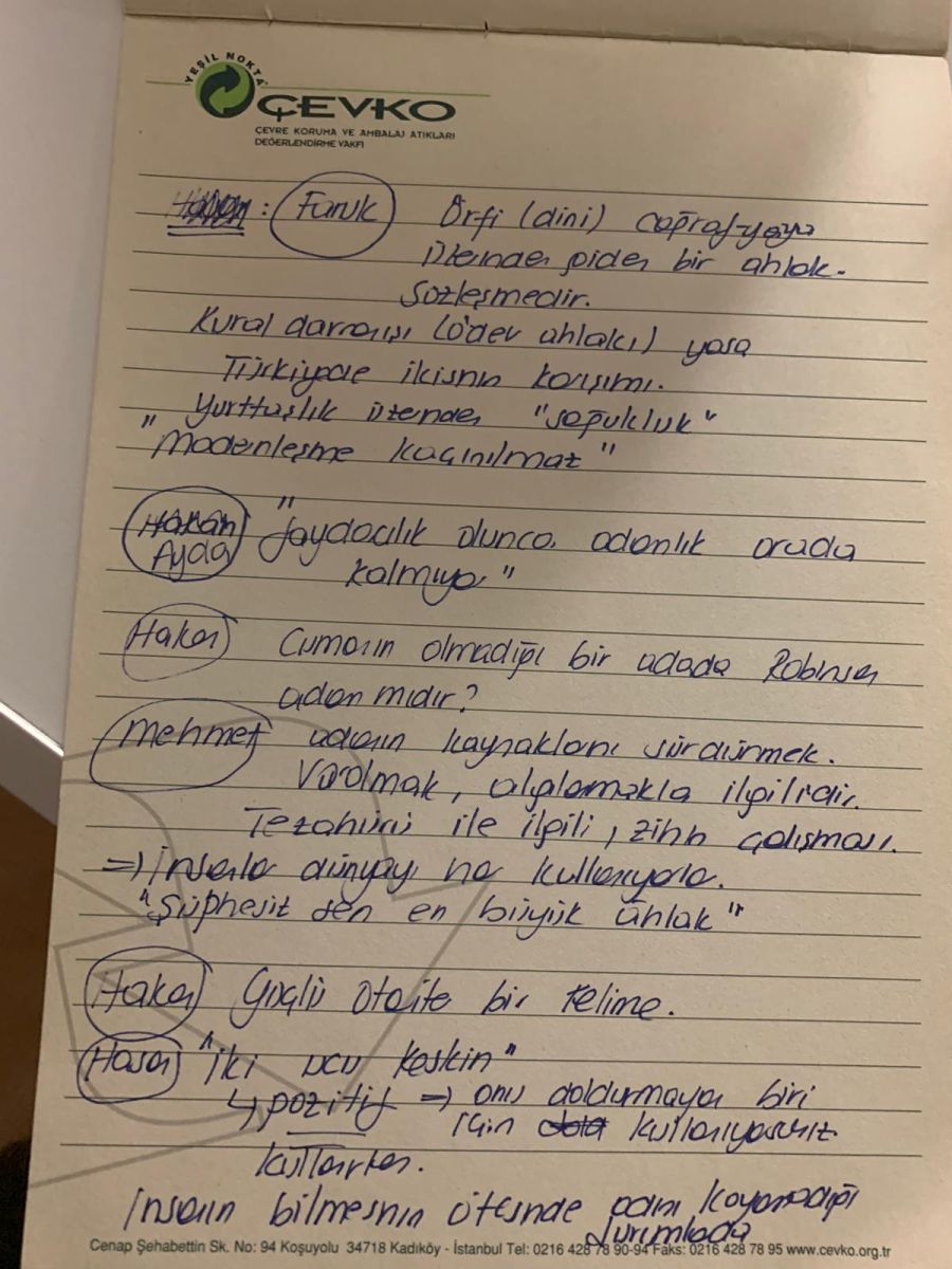 Faruk: Bu kavram örfi, coğrafya üzerinden tanımlanan ve dini değerler üzerinden giden bir ahlak sözleşmedir. Kurala uygun davranış ve/ya ödev ahlakı yasası olarak da düşünülebilir. Anadolu’da birçok değerin karşımı olarak karşımıza çıkıyor. Yurttaşlık üzerinden tanımlamaları tekrardan yapabildiğimizde ve modernleşmenin de yardımıyla ortadan kalkacağını düşünüyorum.