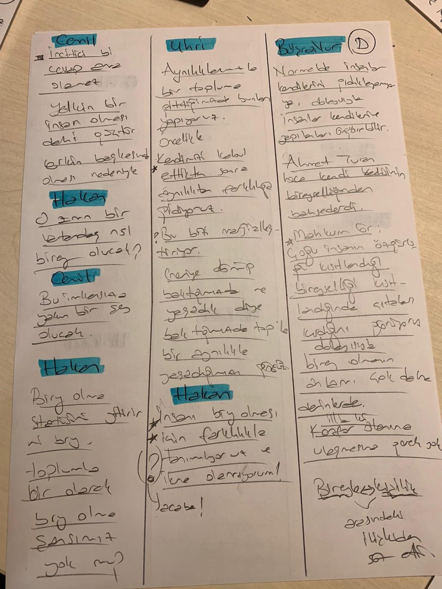 Uhri: Birey nitelemesini biz kendimize mi veririz yoksa birilerinin gözünden mi birey oluruz? Yurttaş kavramını bireyle nasıl ilişkilendiririz?
