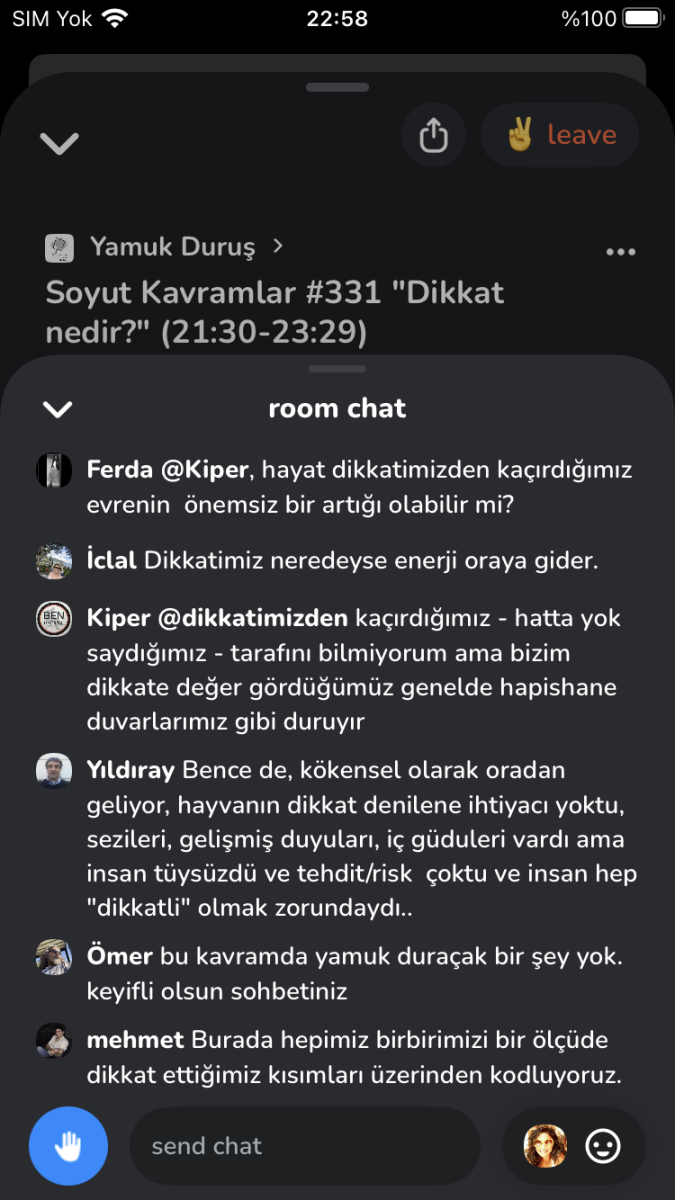 Kiper: Clubhouse platformu üzerinden gerçekleştirdiğimiz Yamuk Duruş Soyut Kavramlar oturumları, Clubhouse’un görsel sınırı da göz önüne alınarak bir dikkat çalışması olarak da değerlendirilebilir mi?