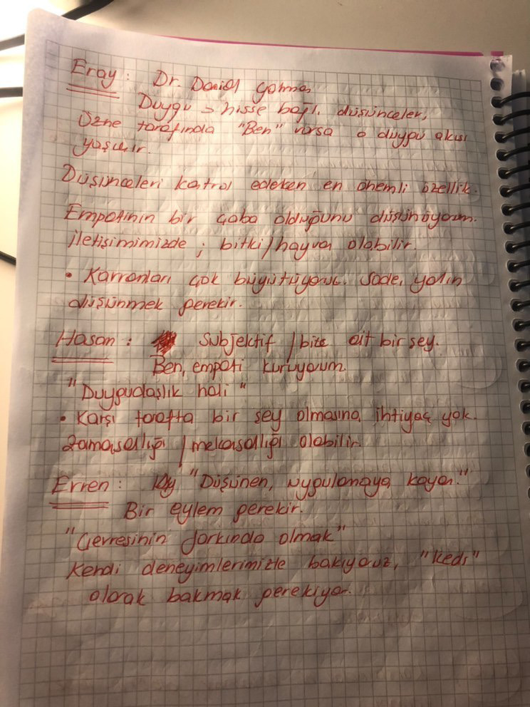 Soru: Bu oturumumuzdaki başlığımız Empati oldu. Empati nedir? Sizler için empati nedir?