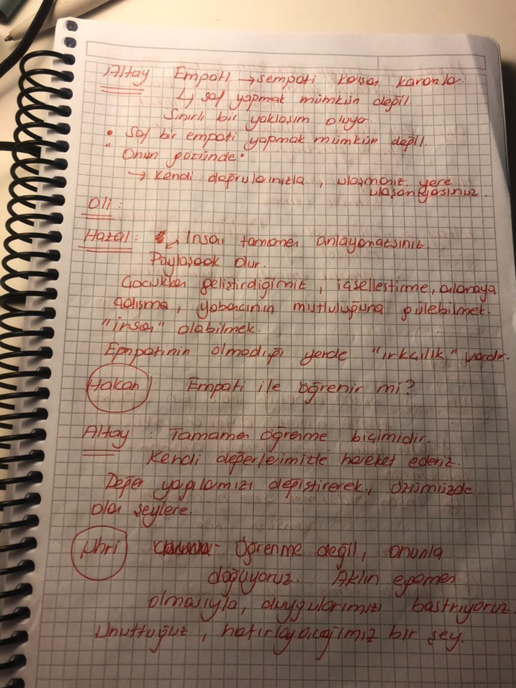 Soru: Bu oturumumuzdaki başlığımız Empati oldu. Empati nedir? Sizler için empati nedir?
