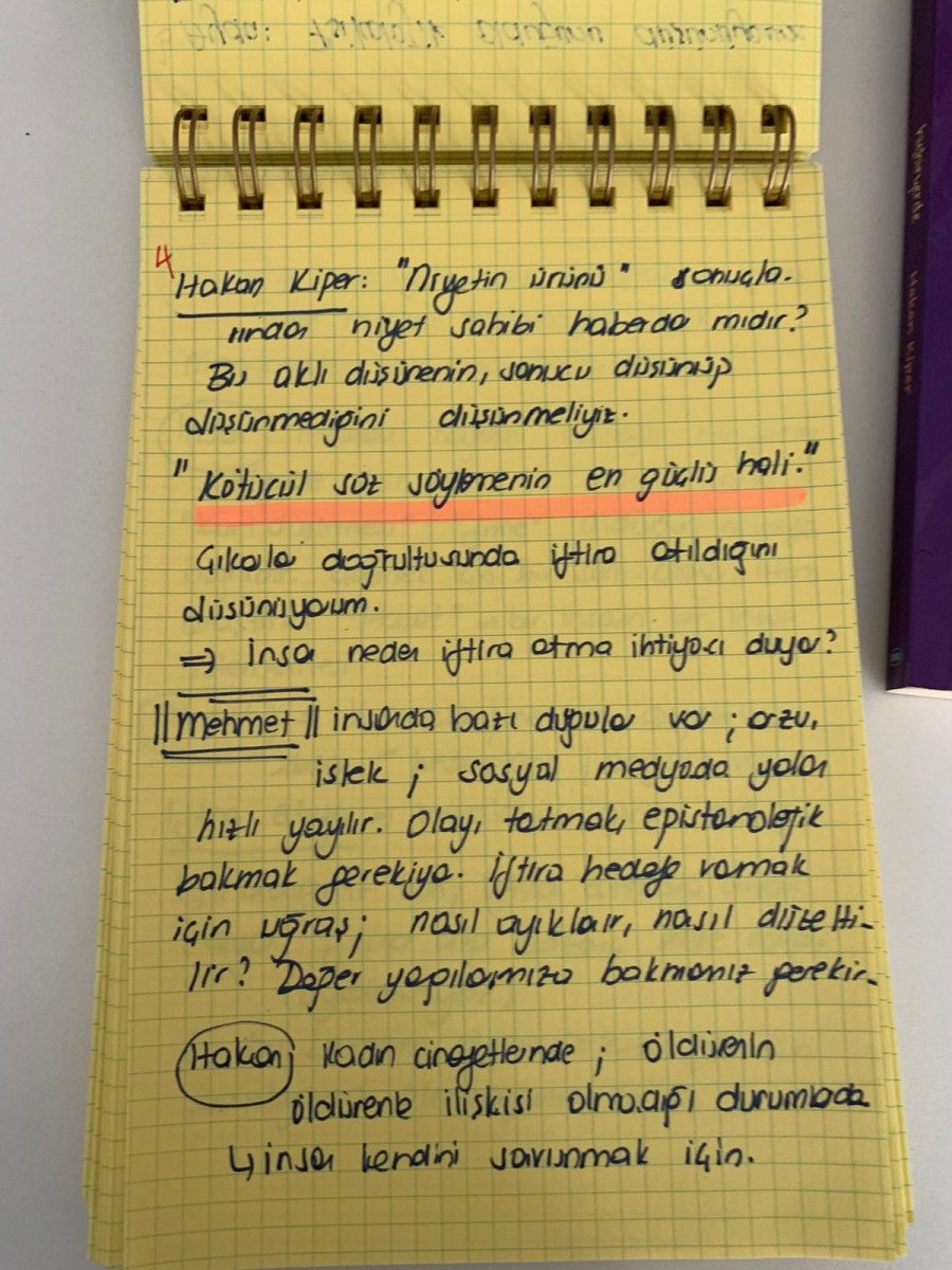 Hakan: Bu kavramın bir akıl ürünü olduğunu unutmamamız gerekiyor. Yalnızca birinin ya da birlerinin aklına gelmesiyle gerçekleşmiyor. Bir devamlılık ve delillendirme, sürekli bir üretim var. İftirayı bu nedenle anlık bir ürün olarak görmemiz gerekir.