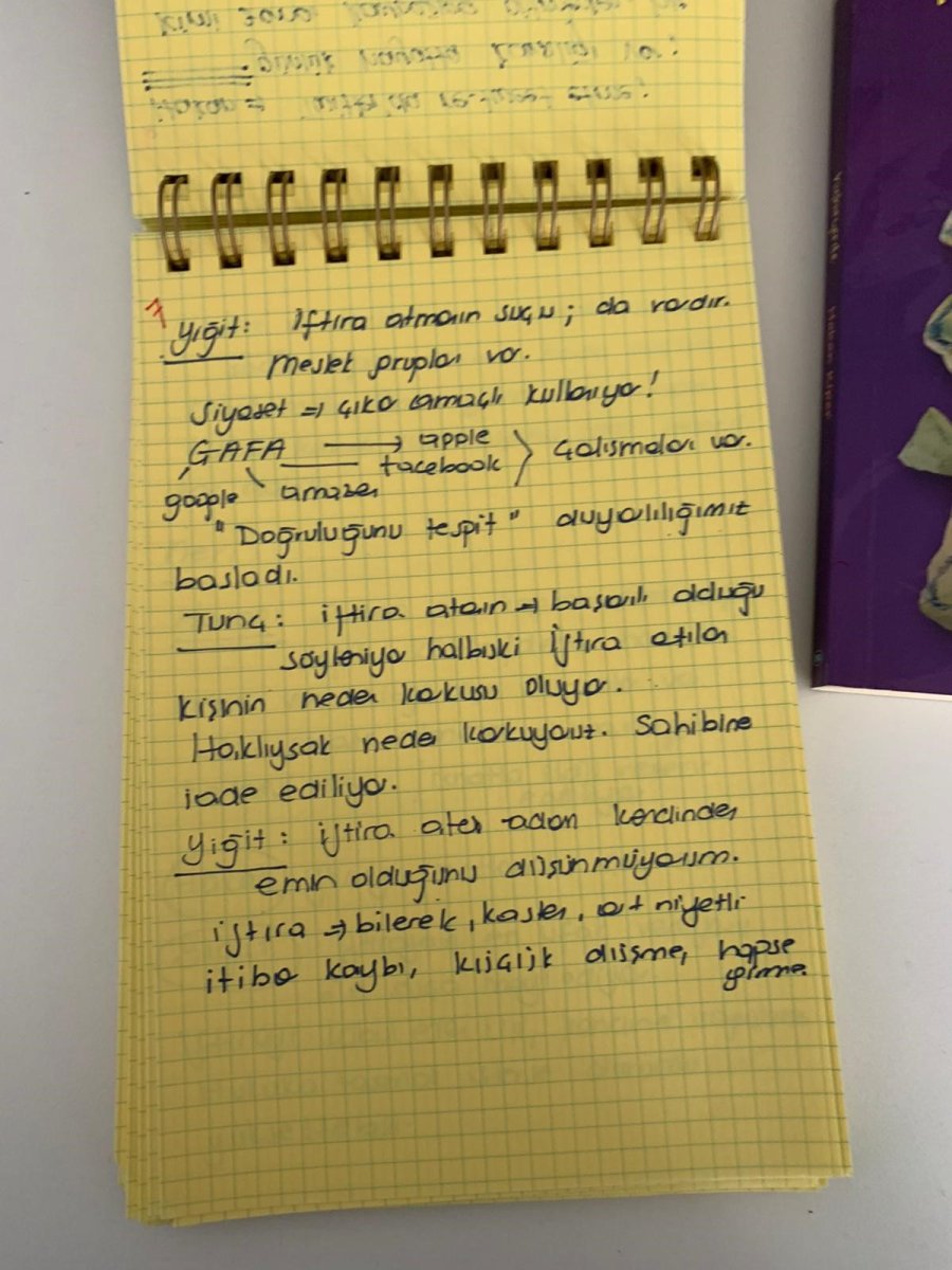 Soru: Bu yayında yine gündelik hayatta sıklıkla karşımıza çıkan bir kavramı ele alacağız. İftira nedir, sizin için iftira nedir?”