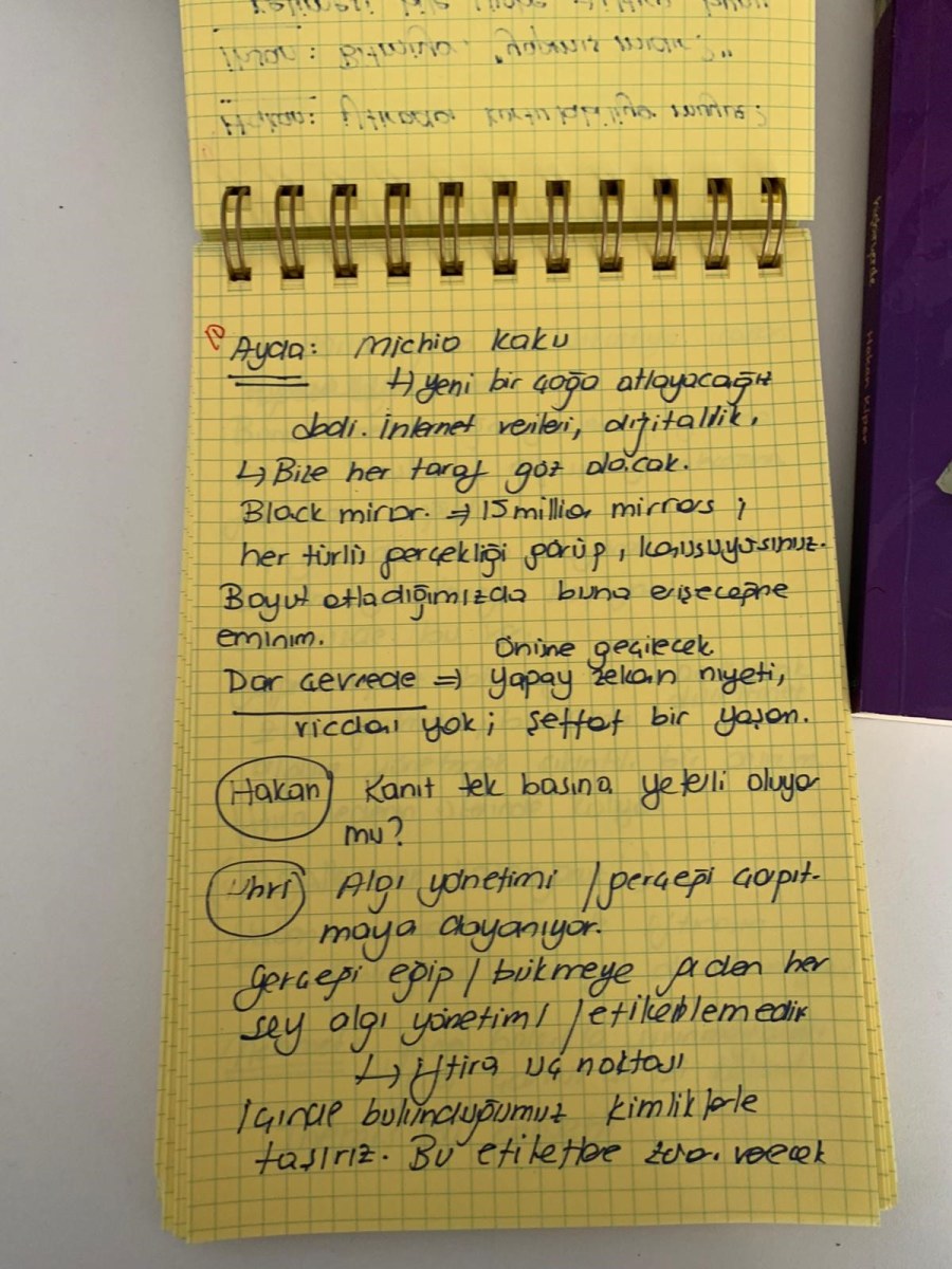 Ayda: Herhangi bir haberi tıklamak, hiçbir şeyin silinmeyeceğini konuştuk. Bunlar bana 1984 romanını hatırlattı. Acaba gerçeğe yaklaşmak için değil de algıyı yönetmeye devam etmek için mi dijitalleşiyoruz?