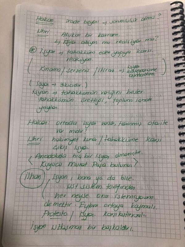 Hasan: İsyan, tahakküm kurmaya çalışan toplum ya da topluluğa karşı gösterdiğimiz direnç veya karşı duruşu isimlendirmek için kullandığımız bir soyut kavram. Maruz kaldığımız ve onaylamadığımız duruma bir karşı çıkış olarak da düşünülebilir.