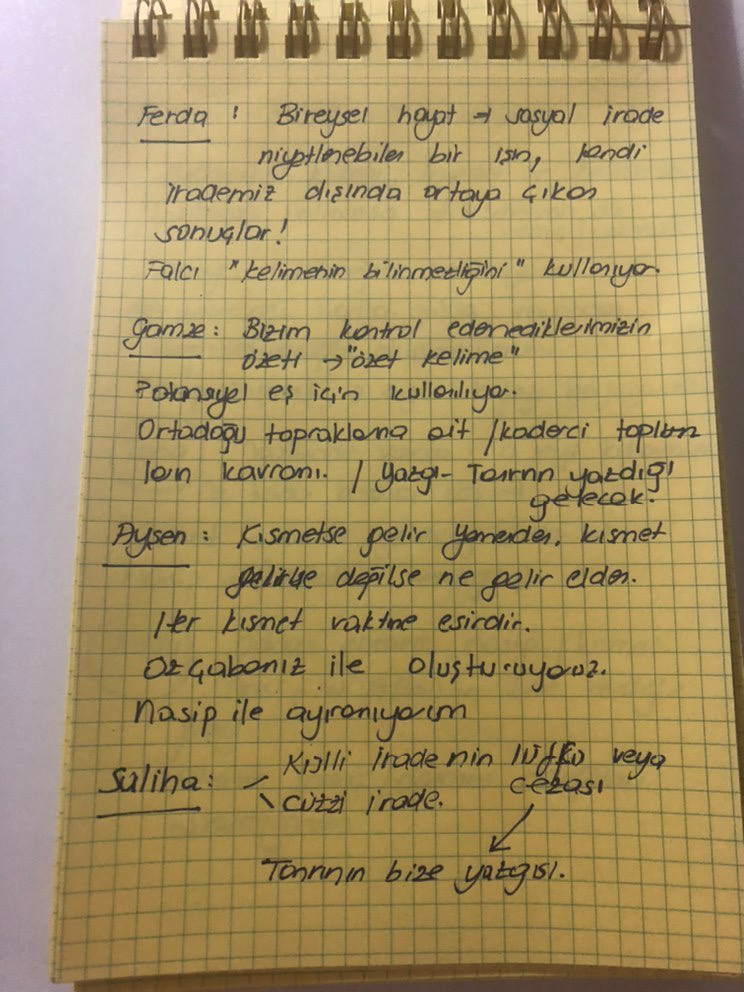 Hasan: Sosyal olarak, fırsat eşitliği için gölgeleme ve rasyonelleştirme işine galiba kısmet diyoruz. Kabul etme, bir tevekkül hali. Bize verilen ve bizim kabul edeceğimiz orana susmamız işi galiba kısmet.