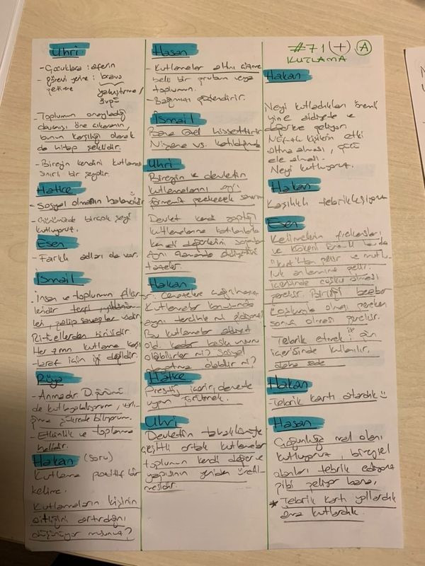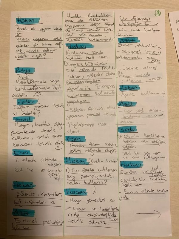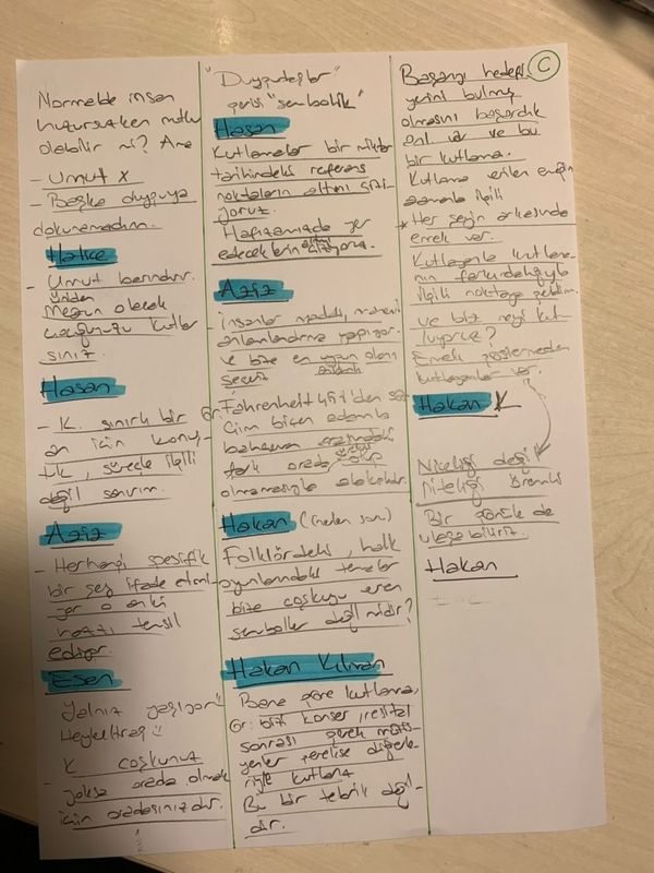 Hasan: Kutlama sanırım süreçle ilgili değil, sadece sınırlı bir an için konuşuyoruz. Yani kavramın zamana yayılan bir tarafı yok gibi görünüyor.