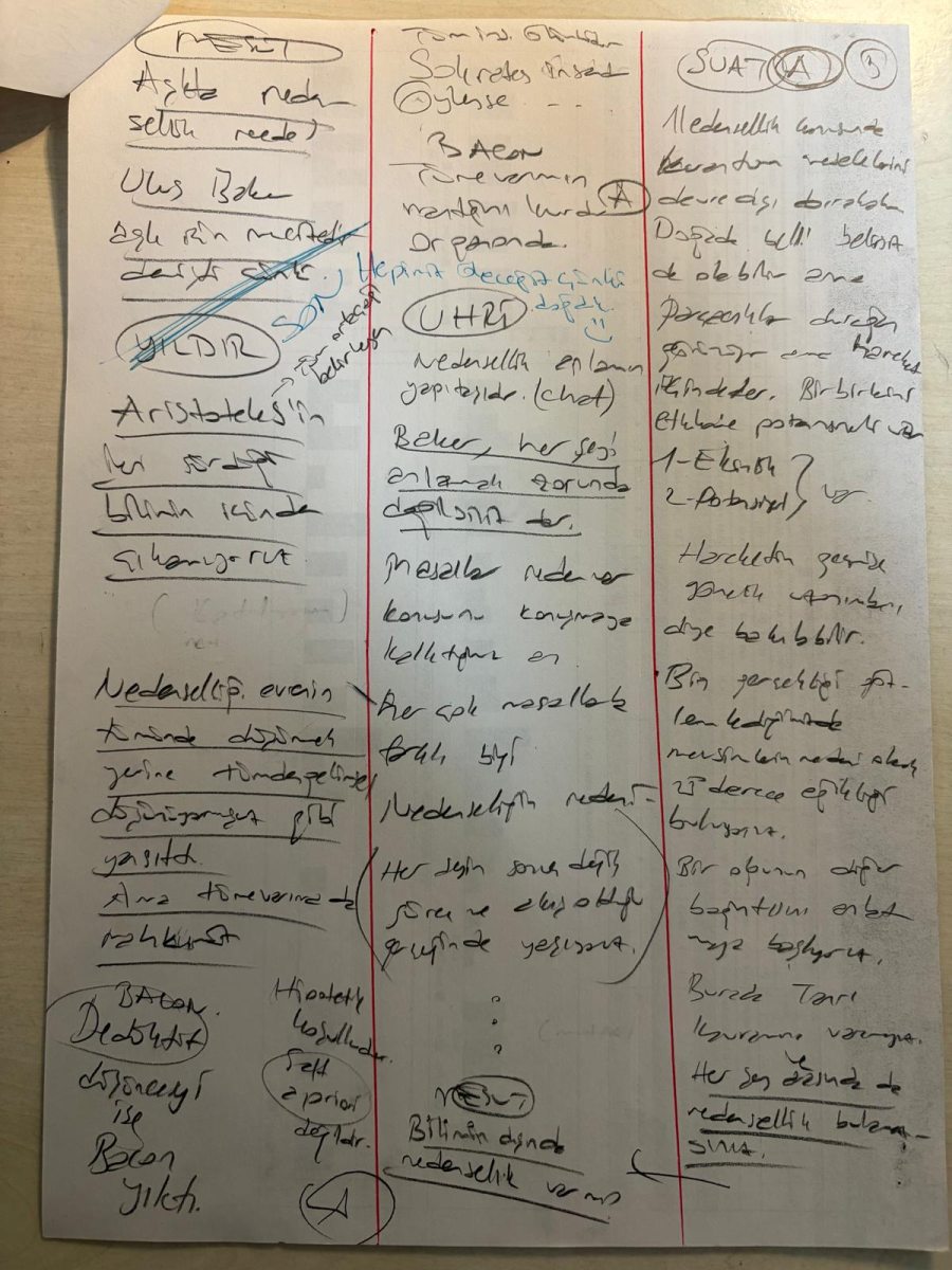 Bir önceki toplantıda bir araya geldiğimizde bilgiyi konuşmuştuk. Bilginin tırnak içinde neliğini konuşmuştuk. Nedensellik sözcüğü bu sözcüğün sadece ortaya çıkışı bile aslında bize düşünsel arka planımız hakkında bir şey anlatıyor. Sözcüğün kökü “ne”. Ne sorusu bizi doğrudan doğruya bilgiye götürüyor. Sonra bunun bu neyse o bilgi neden yani nereden geldiği nereden ortaya çıktığı, bu benim ben bu bilgiyle neden ilgileniyorum ile başlayan ikinci bir bilgiyle ilgili bir soruyu yansıtıyor.