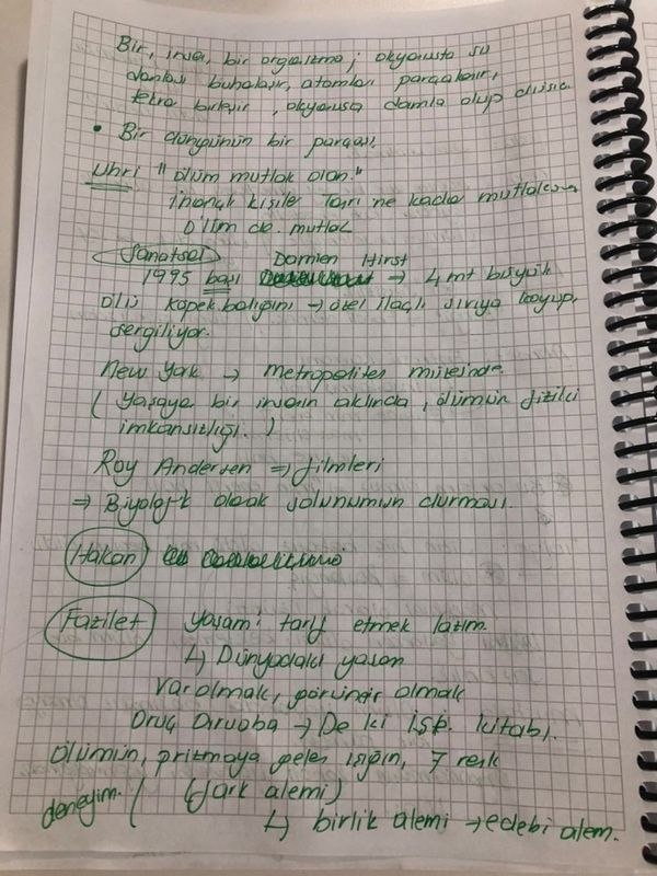 Mehmet: Canlılık hücre zarı gibi seçici – geçirgendir. Ölümse bir yay gibidir.