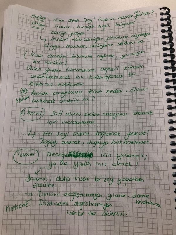 Ahmet: Salt ölüm anlam arayışımızı açıklamaya bence yetmeyebilir. Her şeyi ölüme bağlamak da anlamlı sonuçlara ulaşmamızı engelleyebilir. İnsanın anlam arayışında doğayı anlamak, doğaya hükmetmek önemli yer tutuyor.