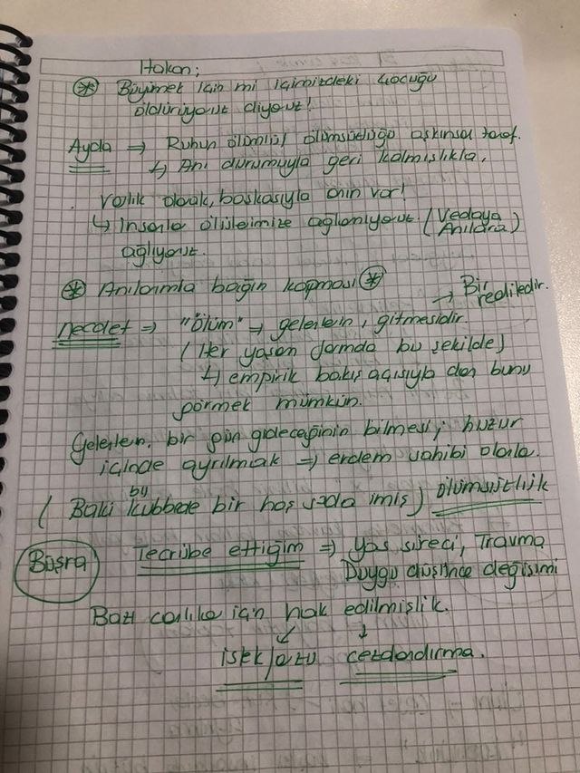 Hasan: Ölümle insanın tüm canlılığı değil, bölgesel canlılığı gidiyor. Ölümün insanın tüm canlılığını aldığını söyleyemeyiz. İnsanın duygu, düşünce gibi bedensel canlılığının ötesinde canlılıkları da var. İnsan öleceğini bilmesine rağmen, yaşayan bir varlıktır. Ölüm; yaşamı tanımlamak, değerli kılmak, anlamlandırmak için kullandığımız bir kaldıraç noktasıdır.