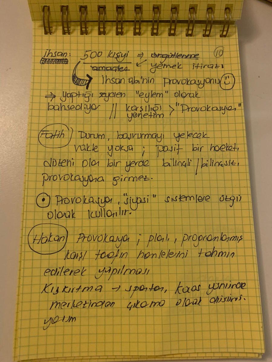 İsmail: Yönlendirme sonucundan provokasyon ortaya çıkıyor gibi bir yere saplandık ama provokasyon bilinçli bir eylem. İkna gücüne bağlı olarak şiddeti belirleniyor.