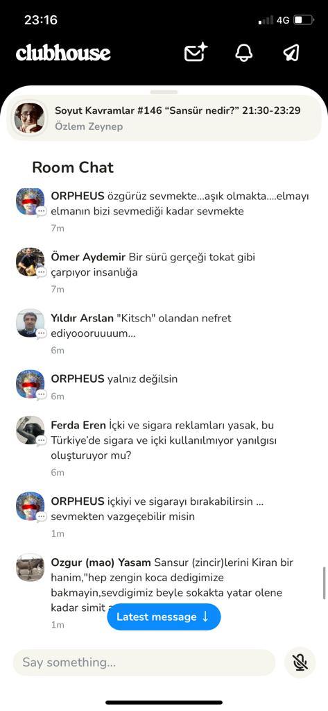 Özgür: Sansür; insanın toplumsal bilinci keşfetmişiyle farklı bilinçlere karşı takındığı tavır ve onu denetleme davranışıdır. Birey bilgiyi, olguyu sansürleyerek dışarı vuruyor. Sansür toplumda evrimleşiyor. Otoriteye saygıyla başlayan sansürün yolculuğu, ahlâkı temiz tutmak, örf âdetleri korumak, toplumu korumak, yanlış bilgiyi bastırmak gibi farklı şekillerde karşımıza çıkıyor. Yine de kimler tarafından uygulandığına bakmak gerek. Sansürün 2500 yıllık tarihine bakarsak sansürü kullananların fayda umarı içinde oldukları görülür. Bugün bu konuşmaları yaptığımız Clubhouse da bile ifadeye sansür uygulandığını görüyoruz.