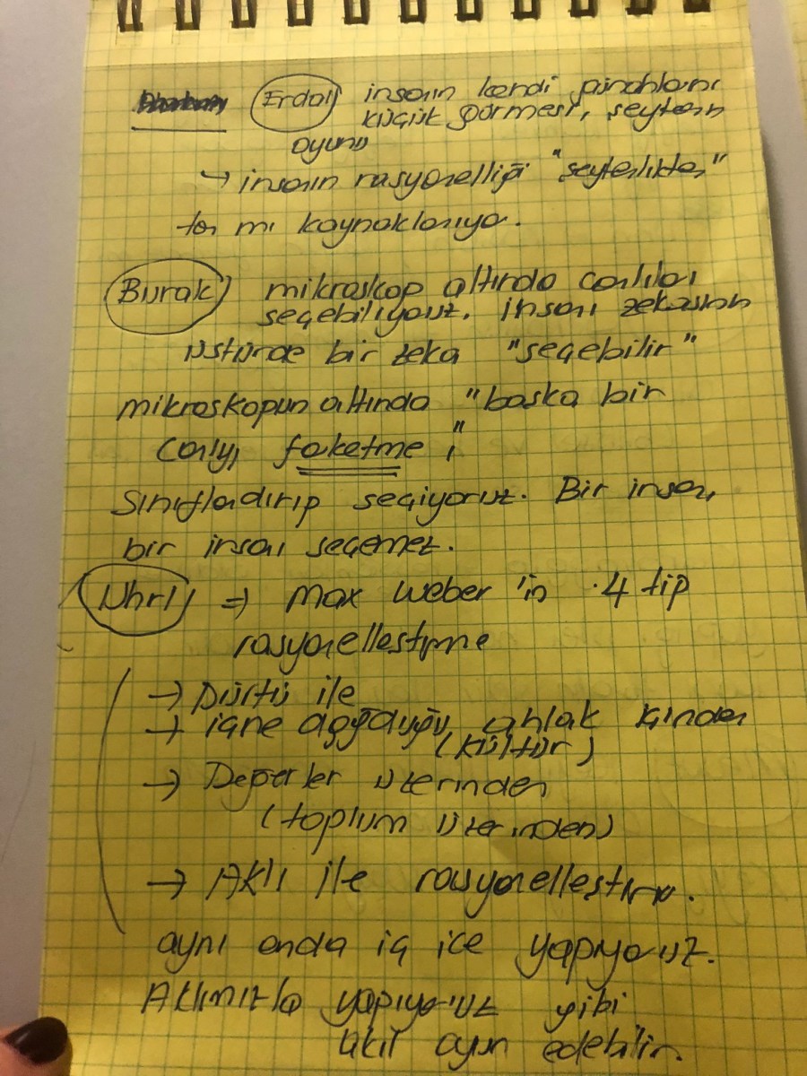Uhri: Max Weber’in 4 tip rasyonelleştirme söylemini hatırlayalım. Dürtü ile, içine doğduğu kültür ile, değerleri ile ve son olarak akıl ile rasyonelleştirme yaptığımızı söylüyor. Biz seçim yaparken aynı anda bu rasyonelleştirmelerin hepsini iç içe gerçekleştirip sonra aklımızla yaptığımızı iddia ediyoruz. Aklımız bize oyun edebilir.