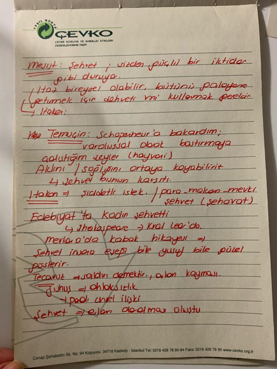 B Bile değil: Köpürtülmüş bir kavram olduğunu düşünüyorum. Dürtü – güçlü ilişkisi ile ele alınabilir. Yedi büyük günahtan biri kabul ediliyor.  Eşik olarak tanımlanabilecek kavramlardan bir tanesi.   Varoluşla ve irade kavramının eşiğinde duruyor. Şehvet, maddeye duyulan ilgidir. Güdülerimizi tatmin etmeye çalışırken “tamah ederiz”. Şehvet, libidonun öncesinde olan bir kavram.