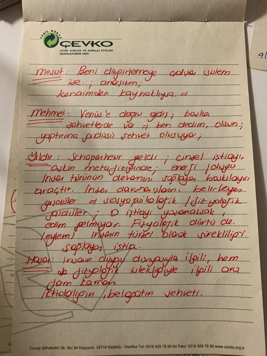 Mehmet: Venüs’e doğru gidişi konuşuyoruz ama başka şehvetler de var. Benim dediğim olsun, kalıbıyla özetlenecek yaptırma güdüsü, erk de şehvet oluşuyor.