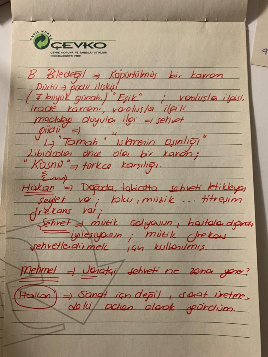 B Bile değil: Köpürtülmüş bir kavram olduğunu düşünüyorum. Dürtü – güçlü ilişkisi ile ele alınabilir. Yedi büyük günahtan biri kabul ediliyor.  Eşik olarak tanımlanabilecek kavramlardan bir tanesi.   Varoluşla ve irade kavramının eşiğinde duruyor. Şehvet, maddeye duyulan ilgidir. Güdülerimizi tatmin etmeye çalışırken “tamah ederiz”. Şehvet, libidonun öncesinde olan bir kavram.