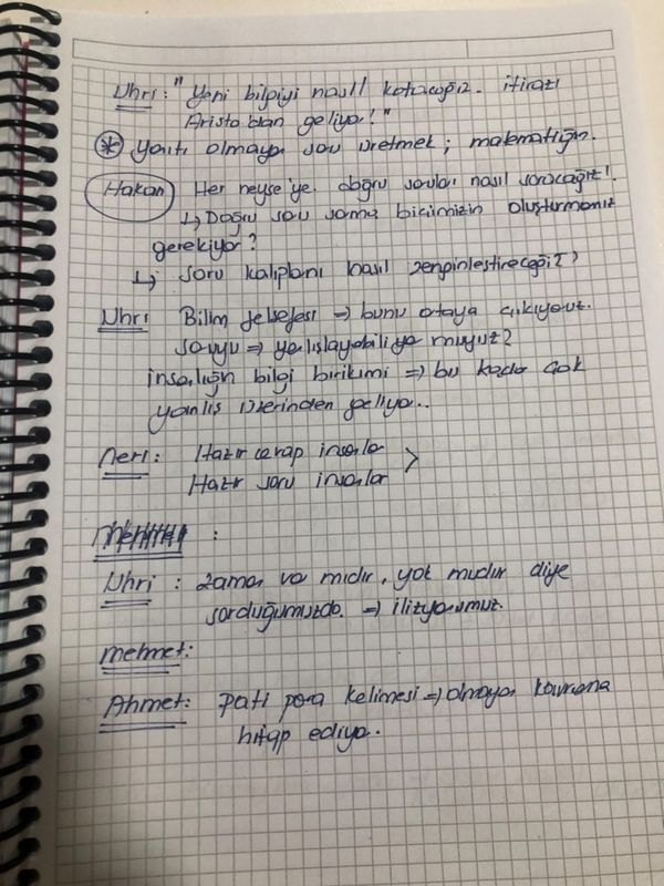 Mehmet: Soru olmasaydı bilim olmayacaktı, ilerleme olmayacaktı. Şüpheci bakış olmayacaktı. Bilmediğin şey için anlamak ve bilinmeyeni öğretmek için sorarsın.