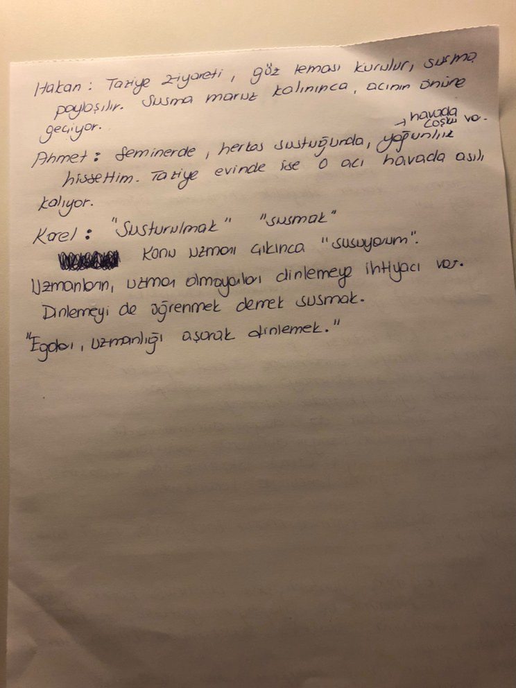 Ahmet: Bir önceyle de bağlarsam kral çıplak diyen bugünlerde itirafçı diyoruz. Susmak yozlaşmaya katkı sağlayan bir sürece dönüşebilir. Bu nedenle keskin bir şekilde susmanın iyi ya da kötü olduğunu söyleyemeyiz.