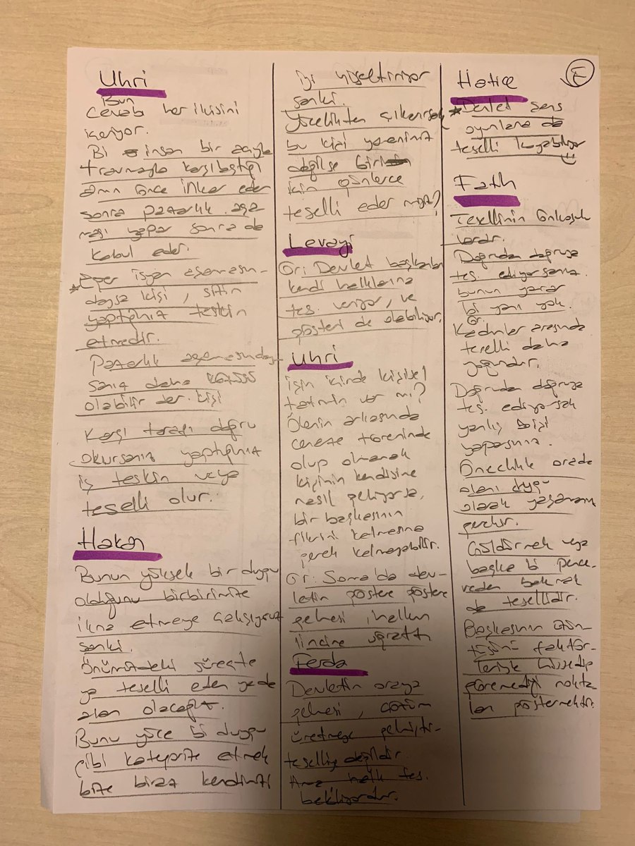 Hasan: Teskin etme anlık bir eylemken, teselli daha uzun bir süreci kapsar; bu ikisi arasında bir ayrım yapabiliriz. Teselli bir karşılıklılık içeriyor mu ve biz böyle bir şey mi bekliyoruz?