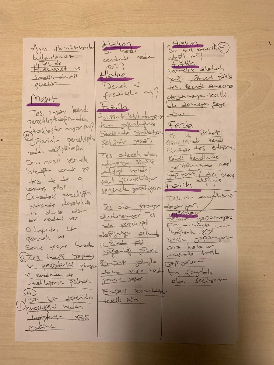 Hatice: Bu konu benimle çok alakalı; insan aciz bir varlıktır, bu yüzden kendini ikna yoluna gitmeli ve kendi tesellisini yine kendisi üretmelidir.