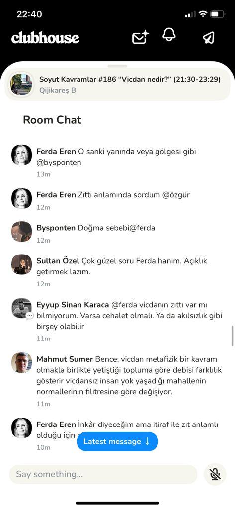 Haşim: Vicdanın sesi güzel bir başlangıç noktası olabilir. Vicdan bakış da olabilirdi. Ses olması, bizimle konuşması, aslında içimizdeki ötekine dair güzel bir başlangıç noktası olabilir. O öteki içimize nasıl yerleşti, nasıl var oldu, nasıl orada kalmaya devam ediyor? Sartre’a baktığımız zaman, utanç için ötekinin bakışının bedenime çarpması olarak tanımlar.  Sartre’dan hareketle belki vicdan da ötekini duymaktır. Dil toplumda ötekilerinin varlığının bir kanıtıdır. Dil aracılığı ile nasıl ötekinden arzulamayı öğreniyorsak yine dil (ses) aracılığı ile ötekinden vicdanı öğreniyoruz ve onu içimize yerleştiriyoruz. Bununla da bir muhakeme yaratıyoruz. Bu muhakemenin sonunda bir suçluluk duygusu oluşabiliyor. Pekiyi, bu suçluluk duygusu kime dair? Kimin karşısında suçluyuz? Vicdanımızın nesnesine de buradan ulaşabiliyoruz. Kültürden kültüre farklılık gösterebiliyor.