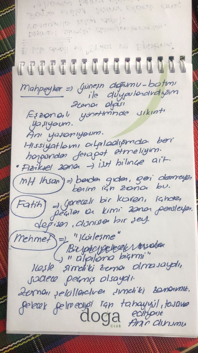 Soru: Bugün ve sonraki iki oturumda “Zaman” kavramını konuşacağız. “Zaman nedir, sizin için zaman nedir?”