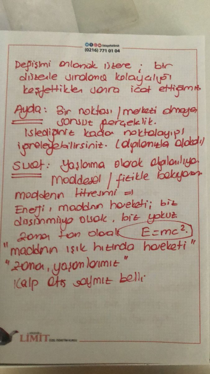 Suat: Ölçümler göreceli ama bu onun geçersiz olduğu anlamına gelmiyor. Nesnel dünyada karşılaştırma yapma olanağımız var. Zaman maddenin hareketinin algılanışından ibaret. Hareketi algılayışımız böyle tanımlıyoruz. Kütle; bir nesnenin öbür nesneye etkisi, etkileme ortadan kalkınca varlık da ortadan kaldırıyor. Bence “aynı anda olmak” diye bir şey var.